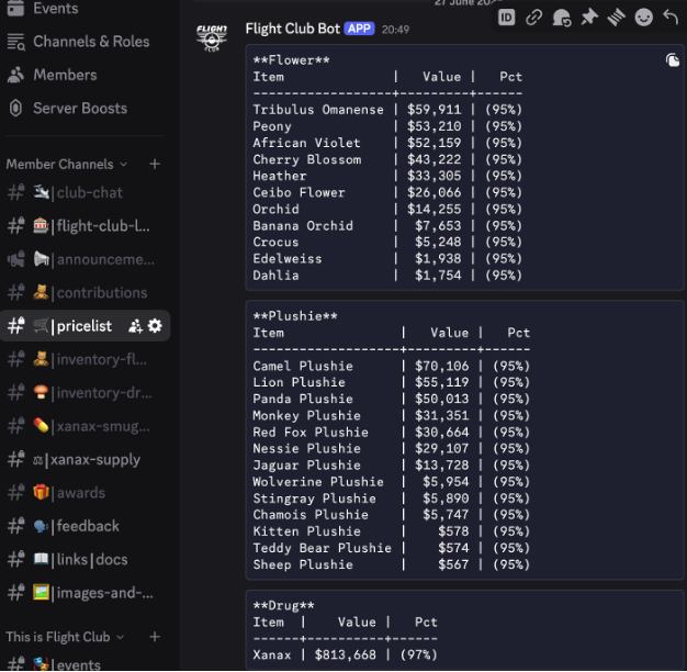 - You can see Flight Club Prices live in our discord channel #pricelist